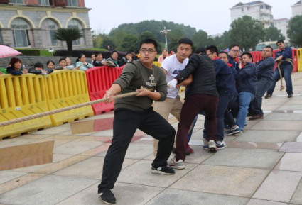 隨著哨聲一響,拔河比賽正式開始,爾康的運動員們雙手握緊長繩,咬緊牙關向后拉,為了把握節奏形成合力,運動員們口中一起高呼著“一二、一二”,和場上的加油助威聲遙相呼應。每向后贏得一步,運動員們都拼盡全力,經過同心協力頑強拼搏,爾康制藥男子隊在36支隊伍中成功晉級前八強。