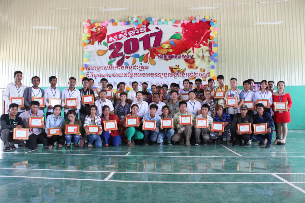 活動共分為兩個部分。第一部分為柬埔寨優秀員工表彰大會。在表彰大會環節,爾康柬埔寨企業集團副總經理楊建平代表爾康總部向柬埔寨員工致新年賀詞,他表示,公司在柬埔寨投資建廠四年以來,投資了4個項目,組建了4個公司,聘請的中柬員工近500人,這些成績的取得,離不開柬埔寨各級政府的支持和幫助,同樣也離不開每一位柬埔寨員工的辛勤勞動。在表彰大會上,共有46名柬籍員工被評為優秀員工,他們既有愛崗敬業、吃苦耐勞的老員工,又有銳意進取、充滿活力的后起之秀;既有開拓創新、技術過硬的專業人員,又有在平凡崗位上默默付出的一線員工。雖然崗位不同,職責有別,但他們都在用自己的實際行動詮釋著對工作的無限熱忱。此次表彰大會旨在號召全體員工向優秀員工學習,鼓勵優秀員工在新的一年繼續起模范作用,帶領員工一起為公司做出新的貢獻!
