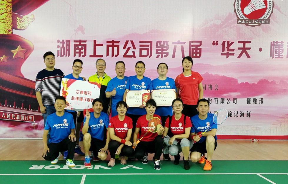 10月19日-20日,湖南上市公司第六屆“華天-懂秘邦”杯羽毛球團(tuán)體賽在省人民體育場隆重舉行,來自全省各地40余家上市企業(yè)參加比賽。爾康制藥和鹽津鋪?zhàn)?6名運(yùn)動(dòng)員組成聯(lián)隊(duì)參與了本次羽毛球盛會(huì)。