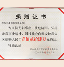 雅安地震捐贈證書