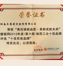 楚天杯 慧聰網(wǎng)制藥行業(yè)十佳輔料品牌