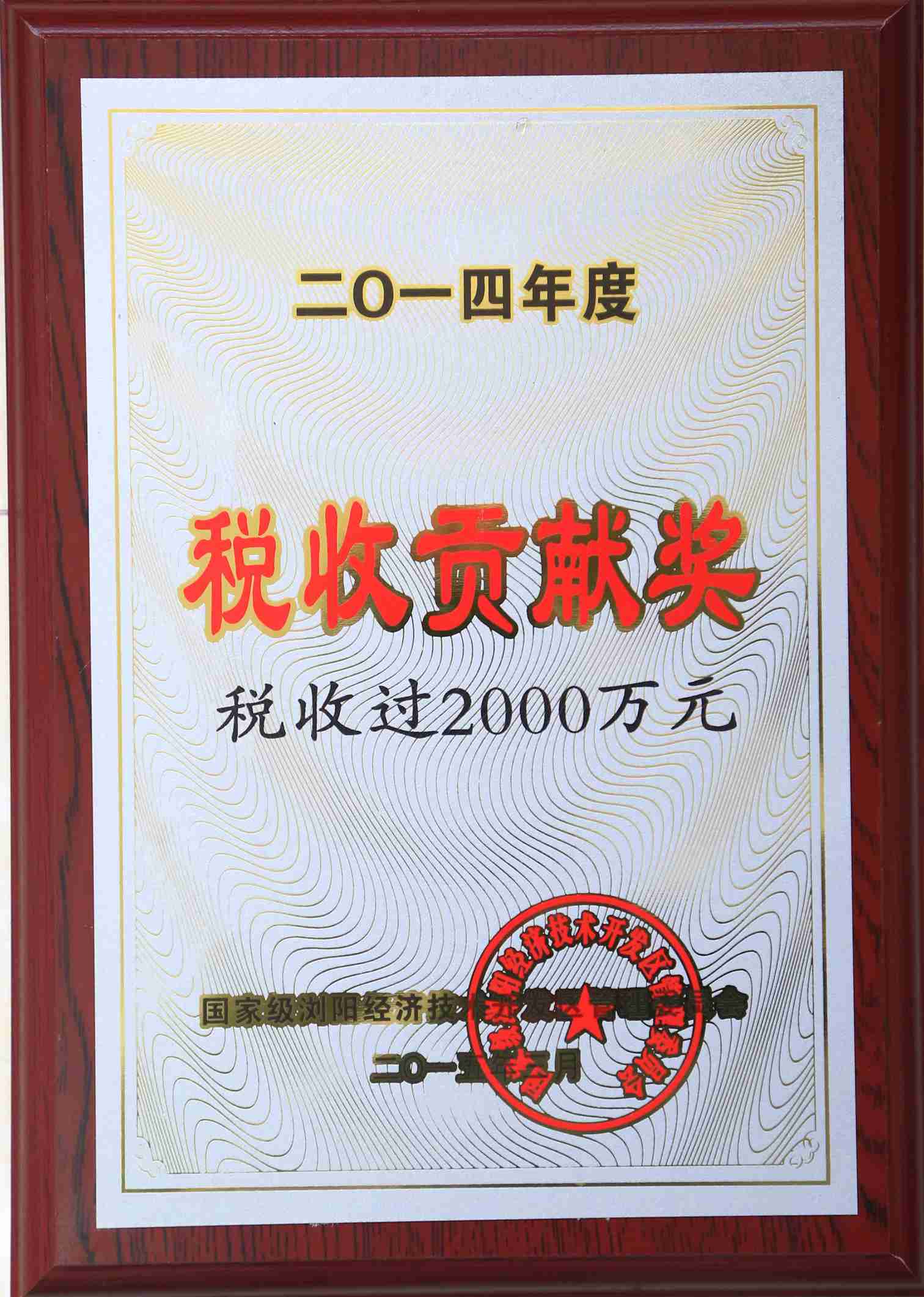 2012年度稅收貢獻(xiàn)獎