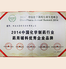 2014中國化學(xué)制藥行業(yè)藥用輔料優(yōu)秀企業(yè)品牌